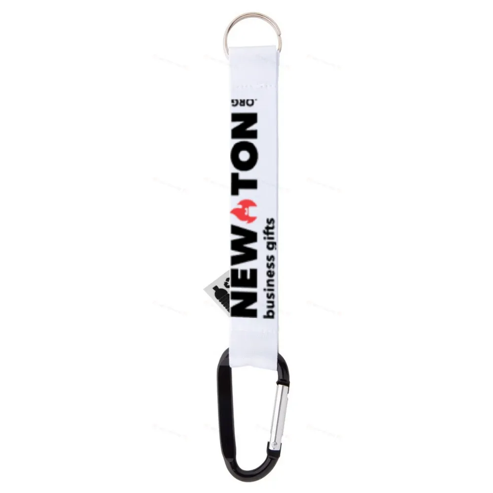Изготовленный на заказ брелок из RPET с сублимационной печатью на обеих сторонах. С металлическим карабином и кольцом. Минимальный заказ: 100 шт.