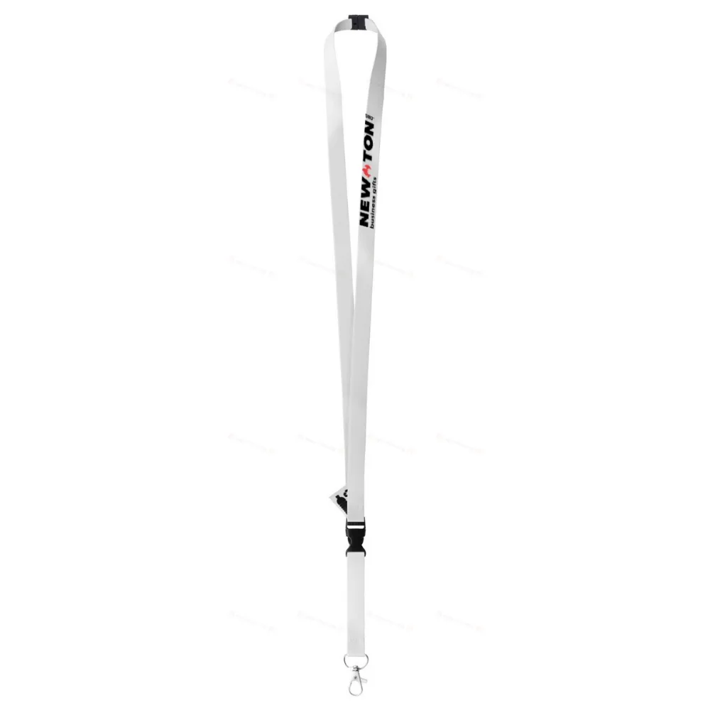 Изготовленный на заказ шнур из RPET шириной 15 мм со съемным металлическим карабином и предохранительной пряжкой. С сублимационной печатью с обеих сторон. Минимальный заказ: 100 шт.