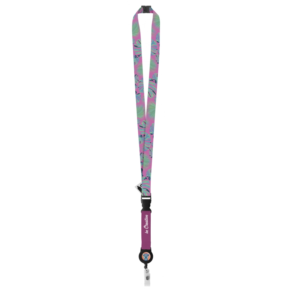 Изготовленный на заказ шнурок из RPET со съемным телескопическим держателем для пропуска и предохранительной пряжкой. С сублимационной печатью с обеих сторон. Минимальный заказ: 100 шт.
