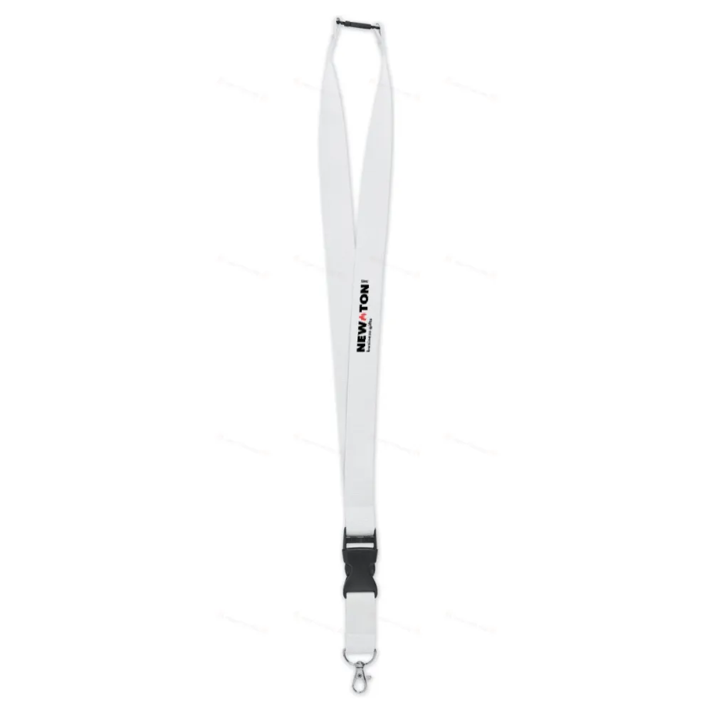 Ланьярд с металлическим карабином, отстегивающийся механизм, и предохранительный разъем. Ширина 25 мм.