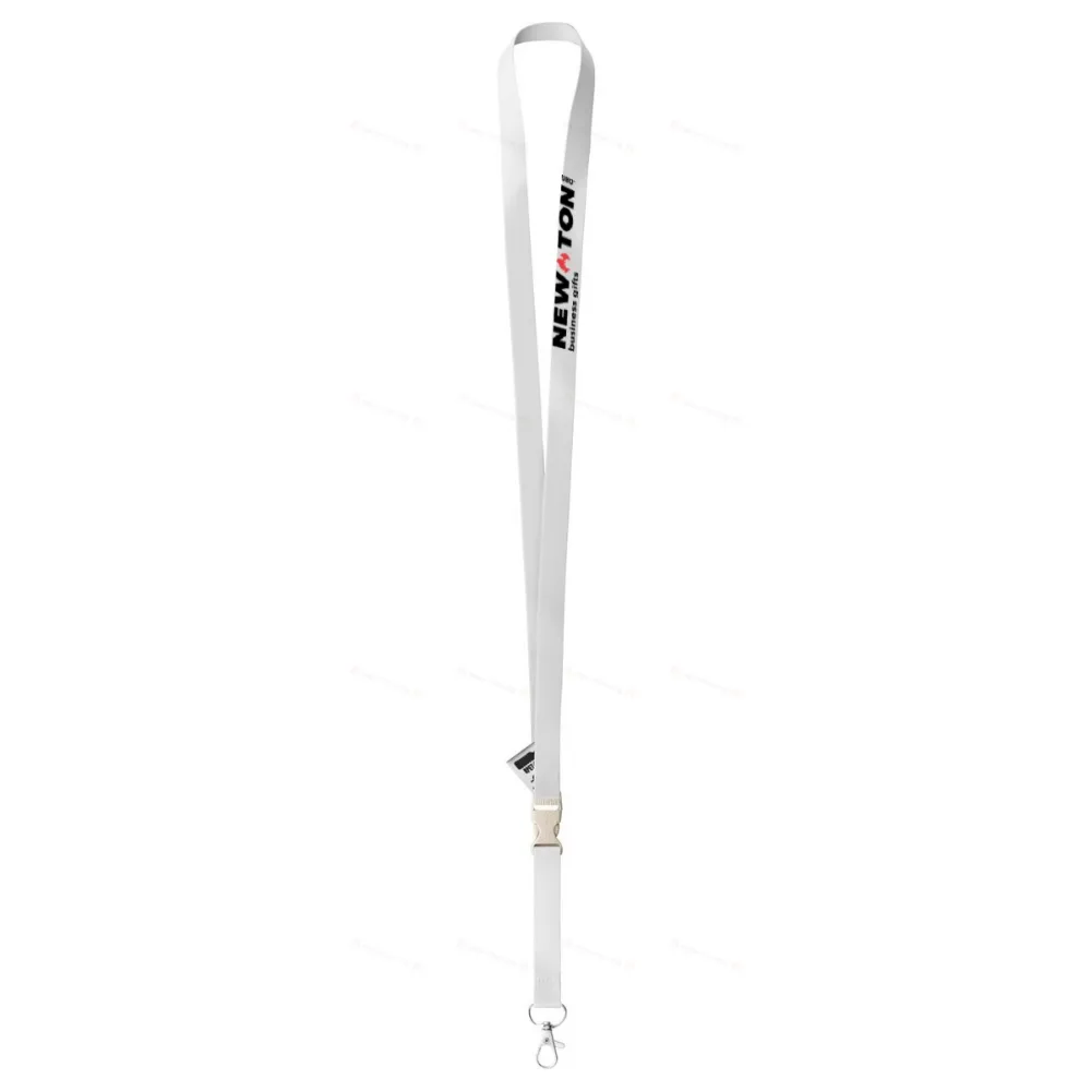 Изготовленный на заказ шнур из RPET шириной 15 мм со съемным металлическим карабином и пластиковой пряжкой из пшеничной соломы. С сублимационной печатью с обеих сторон. Минимальный заказ: 100 шт.