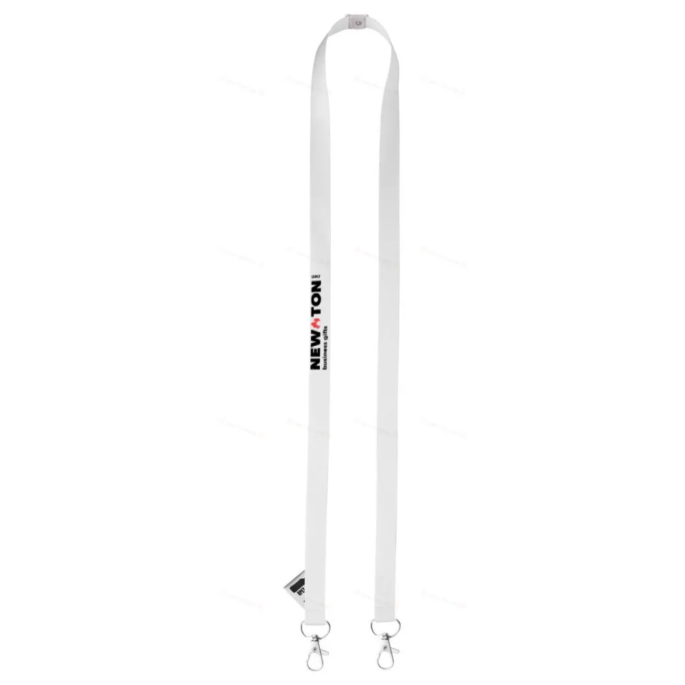Изготовленный на заказ шнур из RPET шириной 15 мм с 2 металлическими карабинами и пластиковой предохранительной пряжкой из пшеничной соломы. С сублимационной печатью с обеих сторон. Минимальный заказ: 100 шт.