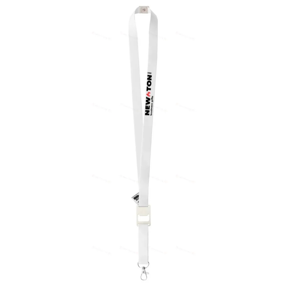 Ремешок из RPET с металлическим карабином, открывалкой для бутылок и пластиковой предохранительной пряжкой из пшеничной соломы. С сублимационной печатью с обеих сторон. Минимальный заказ: 100 шт.