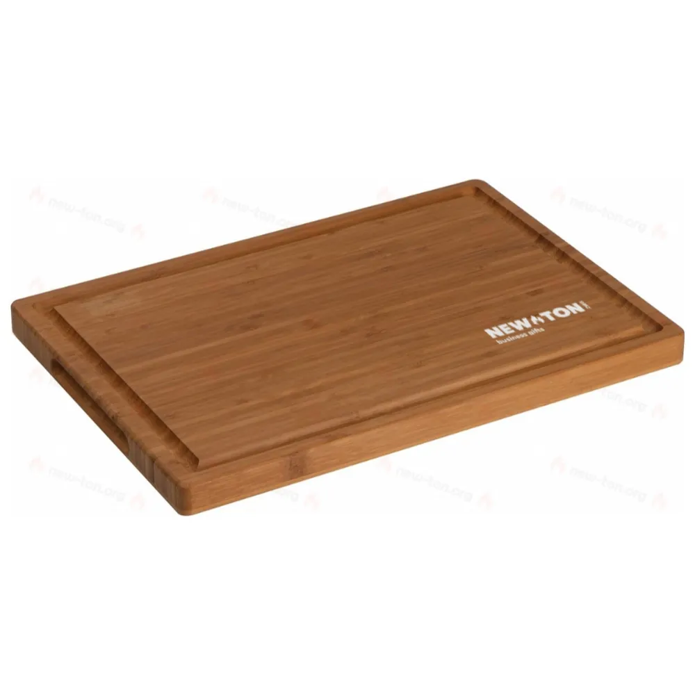 Прочная бамбуковая разделочная доска с поддоном для сбора жидкости и ручками для переноски.