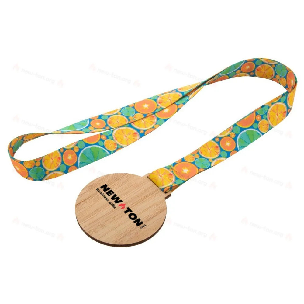 Изготовленная на заказ бамбуковая медаль на шнурке RPET с сублимационной печатью. В стоимость входит сублимационная печать. MOQ: 100 шт.