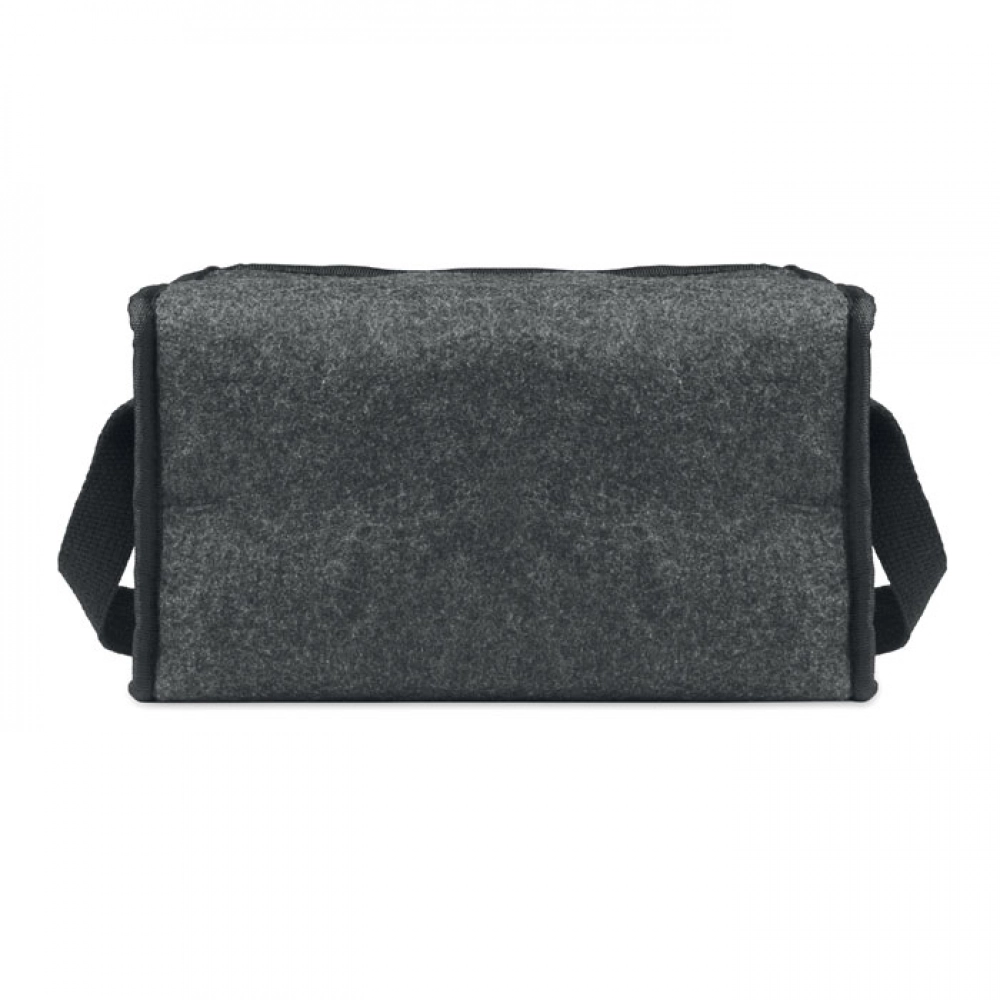 RPET felt cooler bag with front pocket. 1mm RPET felt and 3 mm insulation aluminium laminated foil. Capacity: 5L.