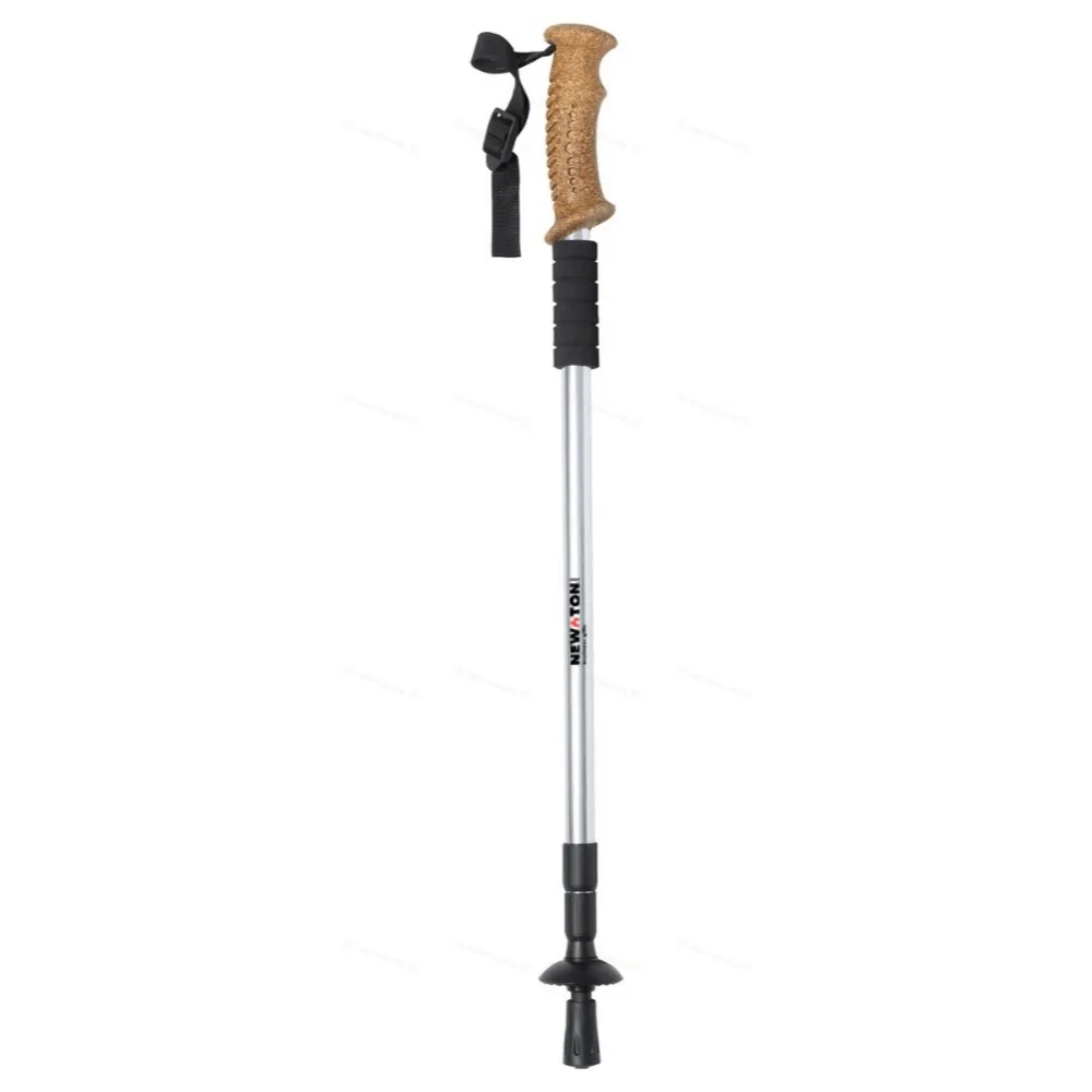 Телескопическая скандинавская палка для ходьбы с алюминиевым корпусом, эргономичной натуральной пробковой рукояткой, ремешком на запястье и антишоковой системой. В комплекте с снежным кошком в сумке из нетканого материала.