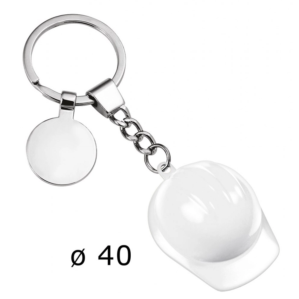 KEY RING WHITE HELMET HELMET D=40mm buy in bulk at a bargain price with your company logo | business gifts new-ton.org