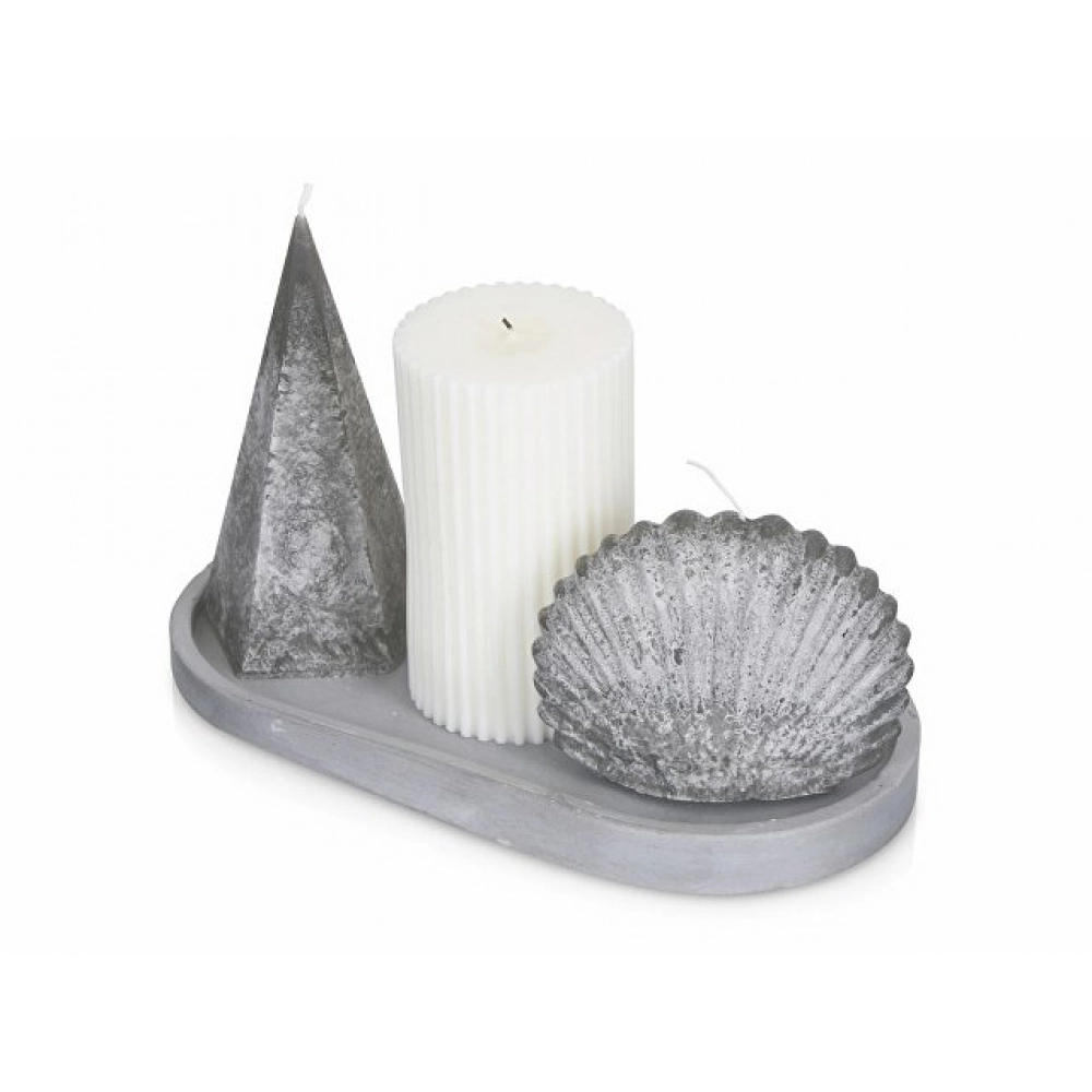 This set of three aromatic candles will definitely appeal to fans of minimalism and styles such as high-tech, loft, eco, and Scandinavian. The concise geometry, combined with the natural design of the shell, natural milky and uneven gray shades, and the base made of gypsum concrete, look natural, stylish, and unobtrusive. The noble scent of black pepper and leather, fresh and tangy at the same time, will provide a feeling of comfort and confidence. The candles are made of 80% natural soy and coconut wax, non-toxic when burning, and not harmful to breathe. After the candles burn out, the stand can be used for palo santo or other incense, as well as for storing various small items or jewelry. - Minimalistic design - Multifunctional gypsum concrete stand - Eco-friendly composition - Handmade