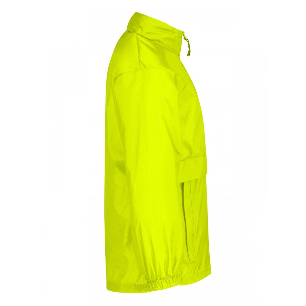 100% nylon taffeta. K-way foldable in the inside pocket, with reclosable hood in the neck, adjustable cord in the lower hem.