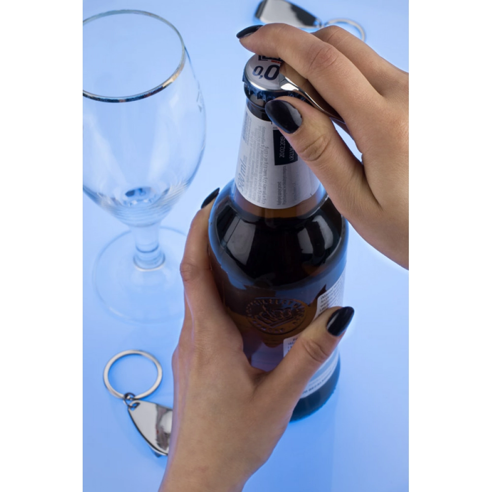 Chromed metal bottle opener – keychain.