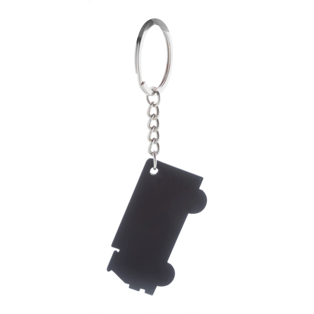 Truck shaped, recycled stainless steel keyring with rubberized finish. With special coating for mirror laser engraving.