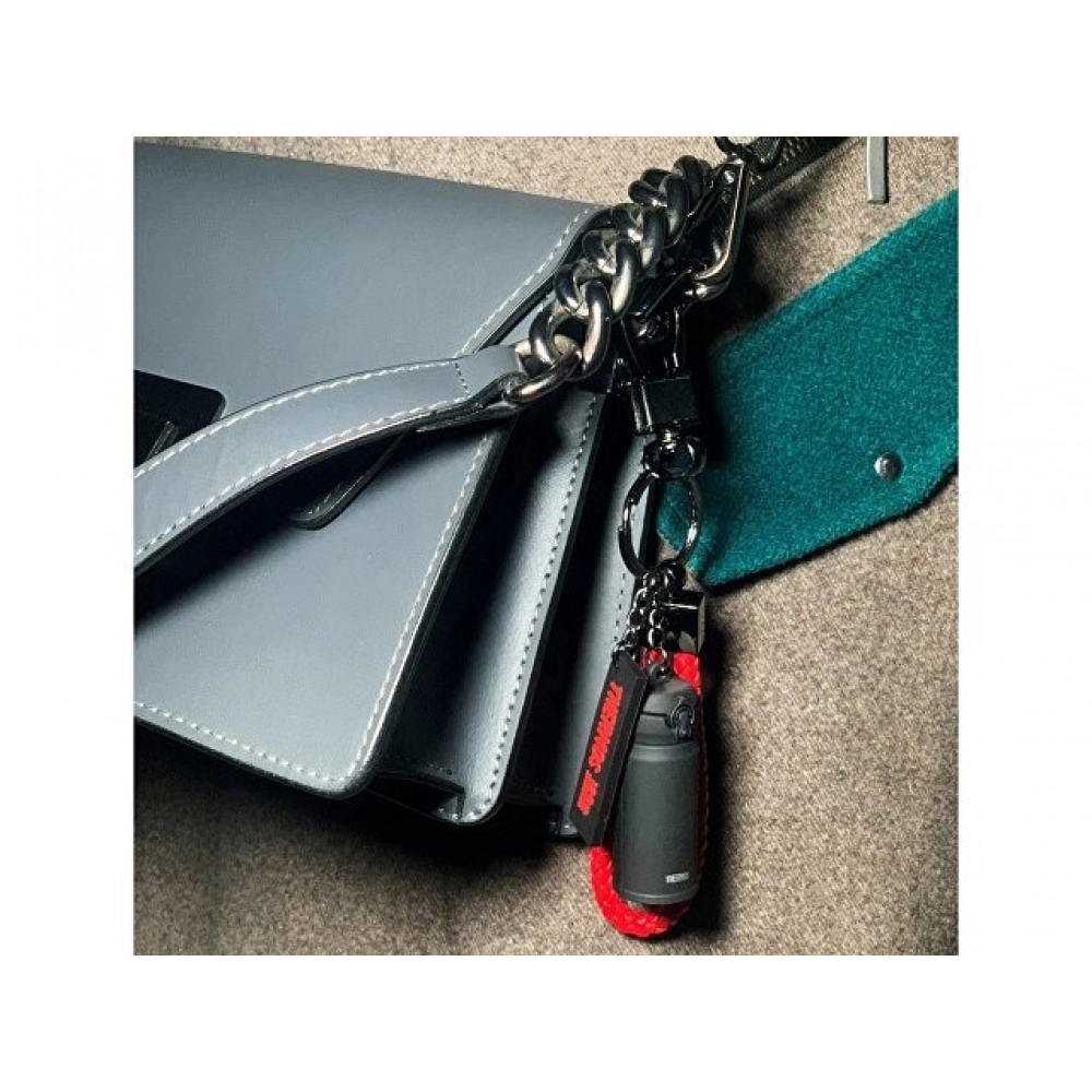 A unique corporate keychain, released in a limited edition for the 120th anniversary of the THERMOS company. This functional souvenir consists of five elements: a spiral ring made of stainless steel, a carabiner made of zinc alloy, a badge with the anniversary logo made of flexible thermoplastic polymer, a braided loop made of eco-leather, and a miniature black JNL thermos replica. Durable high-quality materials, various options for attaching keys, and as a decorative charm for a bag or backpack. Packaged in a compact transparent plastic box.