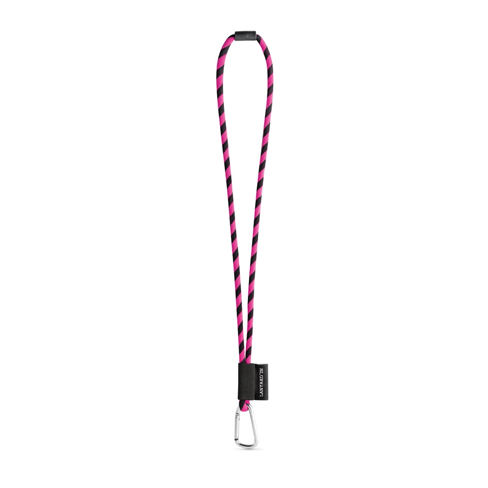Custom Lanyard long tube in polyamide with 17 standard colours available for customisation. Includes the following accessories and extras: elastic available in all Pantone® colours, 43 x 22 mm sublimation label , 55 mm metal hook and ø6 mm safety lock. ø7 x 470 mm