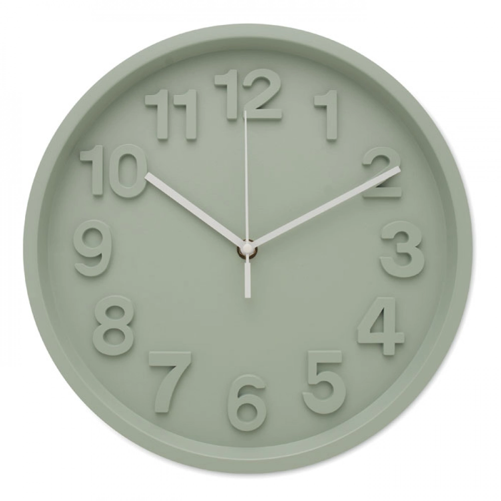 Wall clock in PP with aluminium hands and silent movement. Requires 1 AA battery (not included).
