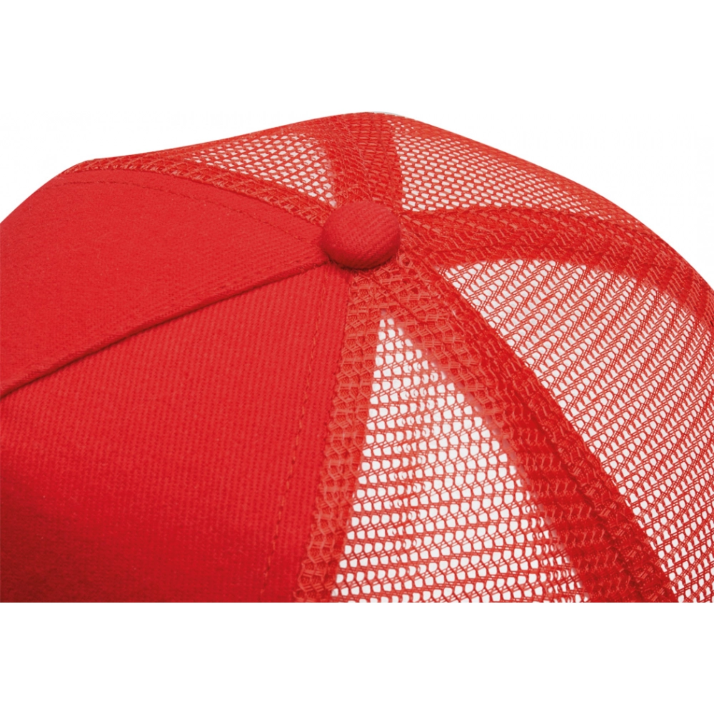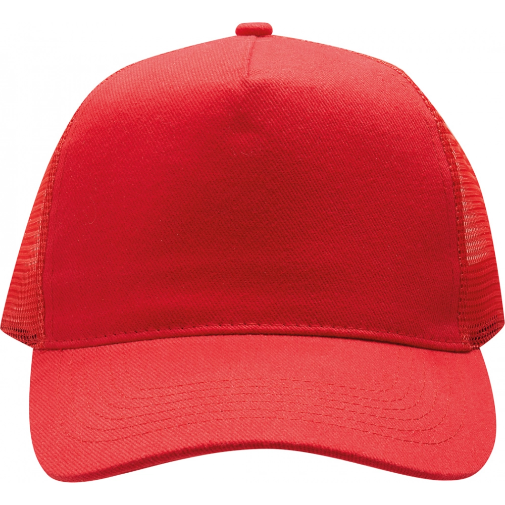 5-panel baseball cap FASTBALL: reinforced front segment made of brushed cotton, other segments made of mesh, adjustable in size, double-row plastic fastener at the back