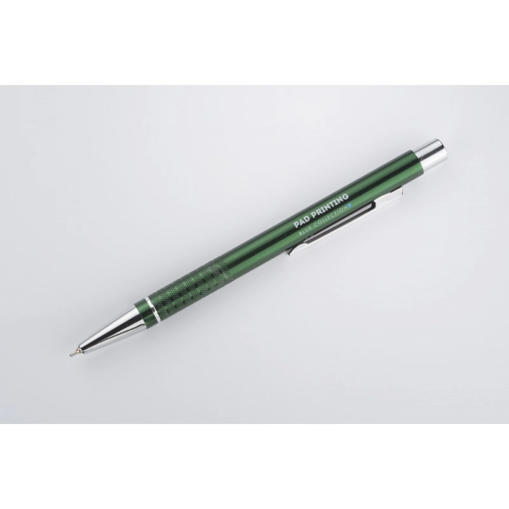 BONITO pen is a classic elegant metal pen in metalic colors with chrome plated finishes. Made of aluminum. The corpus is decorated with a silver ring on the bottom and with bands with delicately chrome plated structure. The ball pen icludes new type of refill with semi-gel ink, thickness 0,7 mm. Insert in blue.