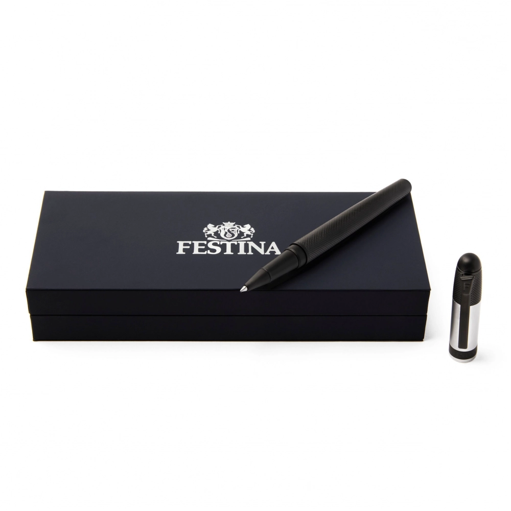Festinas top selling Classicals pen is re-invented with a new capsule edition: an innovative finishing that brings it a contemporary & luxurious edge. The surface is engraved and plated in matt black contrasted with the matt silver surfacing of the cap. This silver & black version is available as ballpoint, roller or fountain pen.