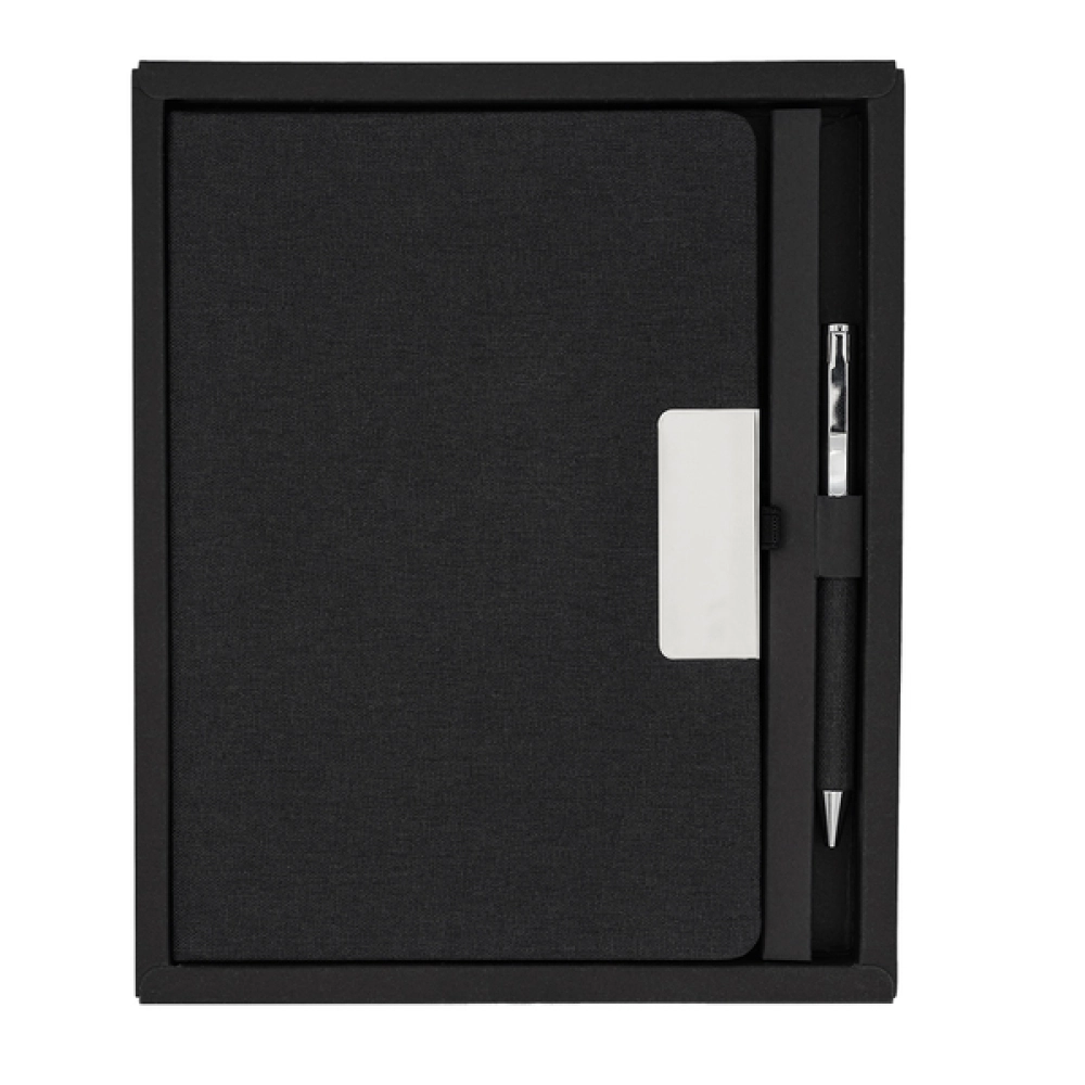 Plata RPET Notebook & Pen Gift Set, black buy in bulk at a bargain price with your company logo | business gifts new-ton.org