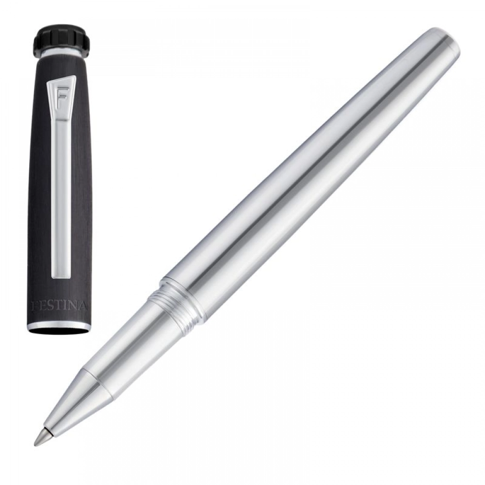 The Chronobike rollerball pen with a black brushed cap and chrome body embodies the collection’s essence of modernity and aerodynamics. Its sleek ovoid shape evokes movement and elegance, while the chrome accents highlight its sophisticated design. Signature details, such as the top inspired by the Chronobike watch's stop button and the bold Festina Blason, emphasize its distinctive craftsmanship. Completed with the line’s signature clip, this pen seamlessly combines style and functionality, showcasing Festina’s dedication to precision and meticulous attention to detail.
