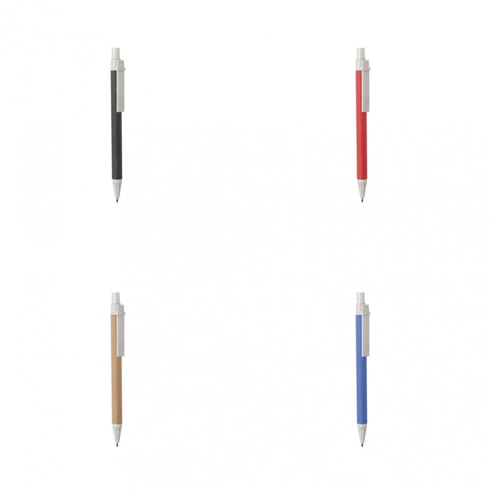 Nature line, push-up mechanism ball pen. Body in recycled cardboard, with accessories in wheat straw, to encourage the use of natural raw materials and reducing contaminant emissions. Available in a wide range of colors, with blue ink refill.