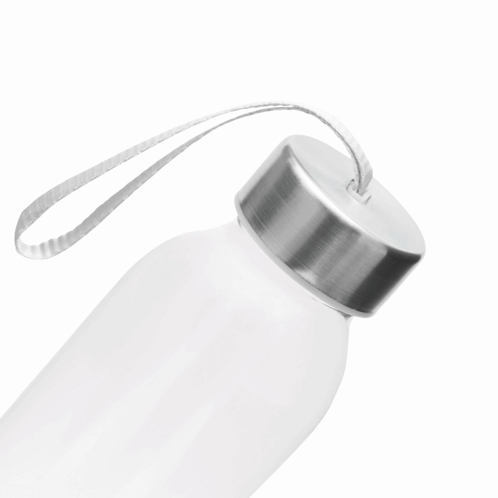 Glass bottle TAKE SMART: stainless steel screw-on lid with silicone seal and carrying loop, capacity approx. 500 ml, in white box
