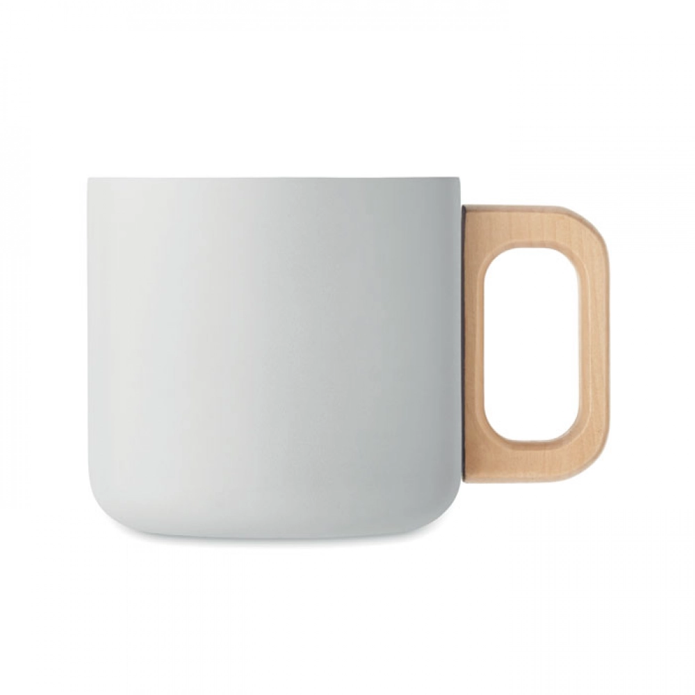 Double wall mug in recycled stainless steel (90% recycled stainless steel and 10% stainless steel) mug with wooden handle. Capacity: 350 ml.