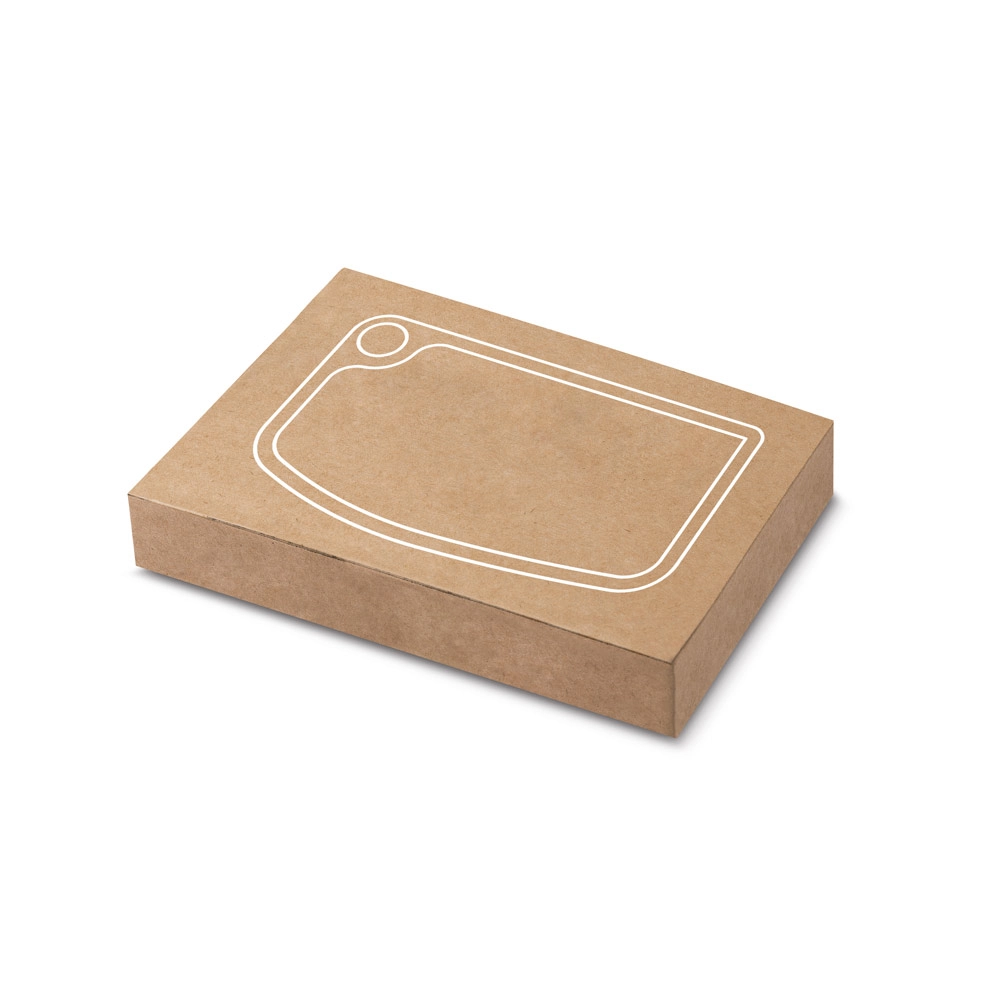 Acacia wood board with an edge around the board. The handle makes it easy to carry and it can be hung up for better storage. Combine this board with the Cassia - 94293 - to complete the set. Supplied with a gift box in kraft made from FSC™ certified material and other controlled materials. 150 x 267 x 15 mm