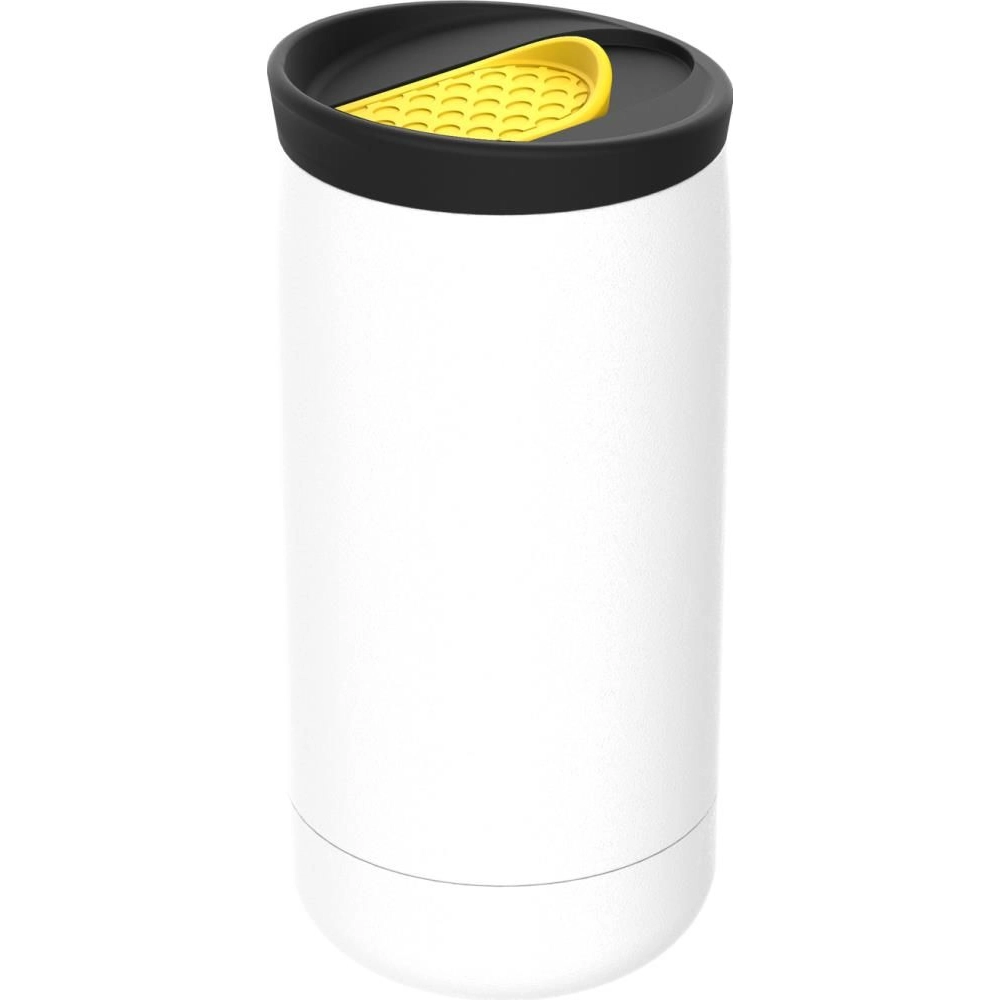 The Mynizza family is growing: This thermal mug is an exclusive in-house design from the RETUMBLER-Nizza family. With a 320 ml capacity, it's perfect as a travel mug. The sliding lid closure is available in 17 colors. Made from recycled stainless steel, this thermal mug boasts high quality and durability. The double-walled copper vacuum insulation keeps your drinks hot for up to 4 hours or cold for up to 24 hours. The mug impresses not only with its performance but also with its attractive exterior. The powder coating/anti-fingerprint finish provides a premium look and a pleasant feel. The finishing touch is the BPA-free, leak-proof snap-on lid with a color-selectable closure. The lid is made from recycled PP plastic and features a sliding mechanism available in 17 colors. This allows you the freedom to customize the mug to match your style and corporate identity. All components of the mug are dishwasher safe. For effective advertising, we offer laser engraving, pad printing, or UV printing on the mug body. The item comes in an attractive gift box.