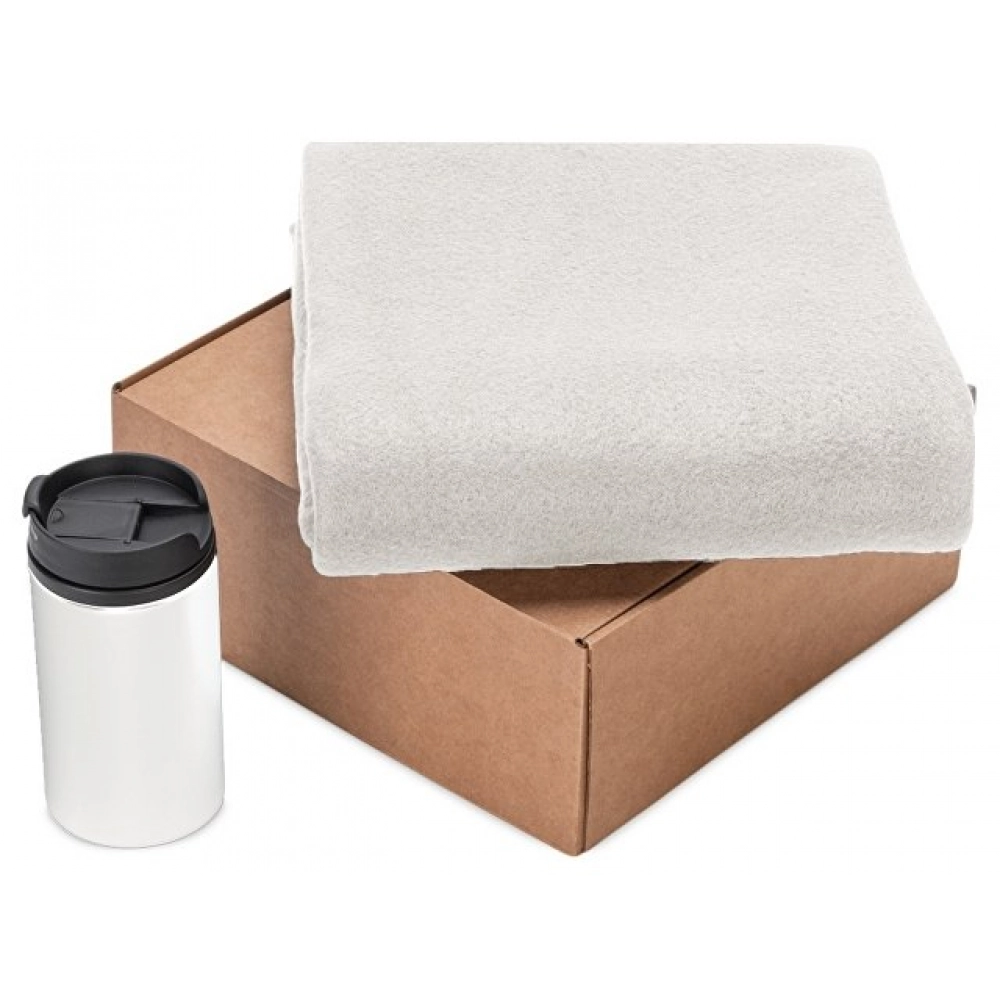 Blanket - fleece 100% polyester, thermos mug - stainless steel outside, polypropylene inside.