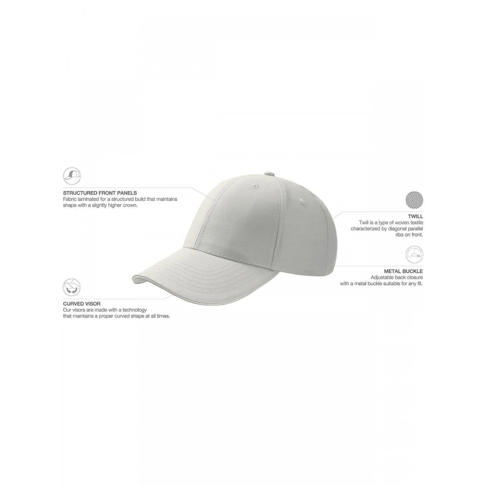 100% cotton size. 6 panels baseball cap, sweatband, sandwich, stitched eyelets, structured front panel, precurved visor, 6 stitchings on visor, one size fits all. Removable label.