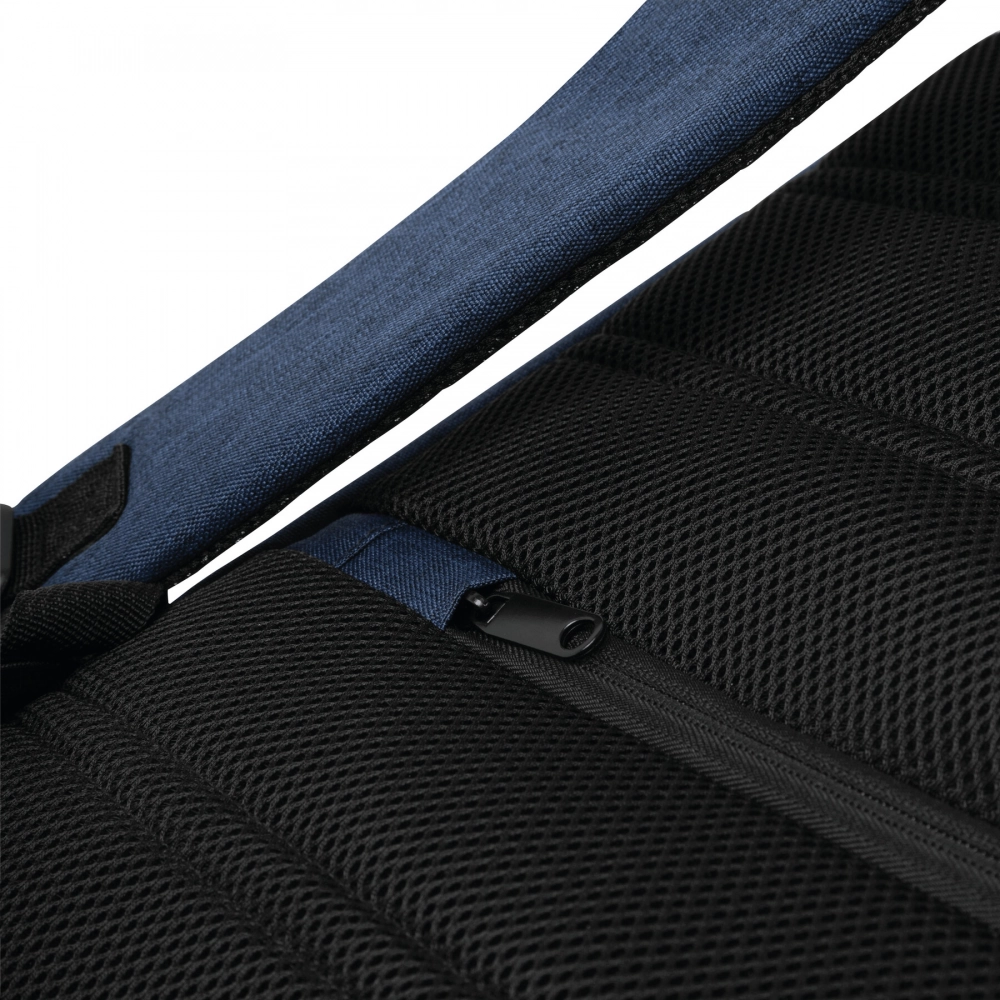 Backpack PROTECT: front compartment with vertical zip, 1 spacious main compartment with zip, laptop compartment, and 3 slip-in pockets, foldaway carabiner on the outside for securing zip against theft, carrying handle, padded and ergonomic shoulder straps, padded back area with security compartment