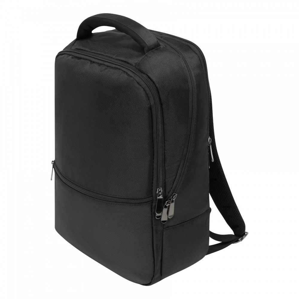 Backpack OXFORD: 1 small front compartment with zip, 1 front compartment with small organizer, 1 main compartment with zip and 2 padded slip-in pockets for media devices and 1 mesh pocket with zip, 1 padded laptop pocket, padded and ergonomic shoulder straps, padded back area with reporter function
