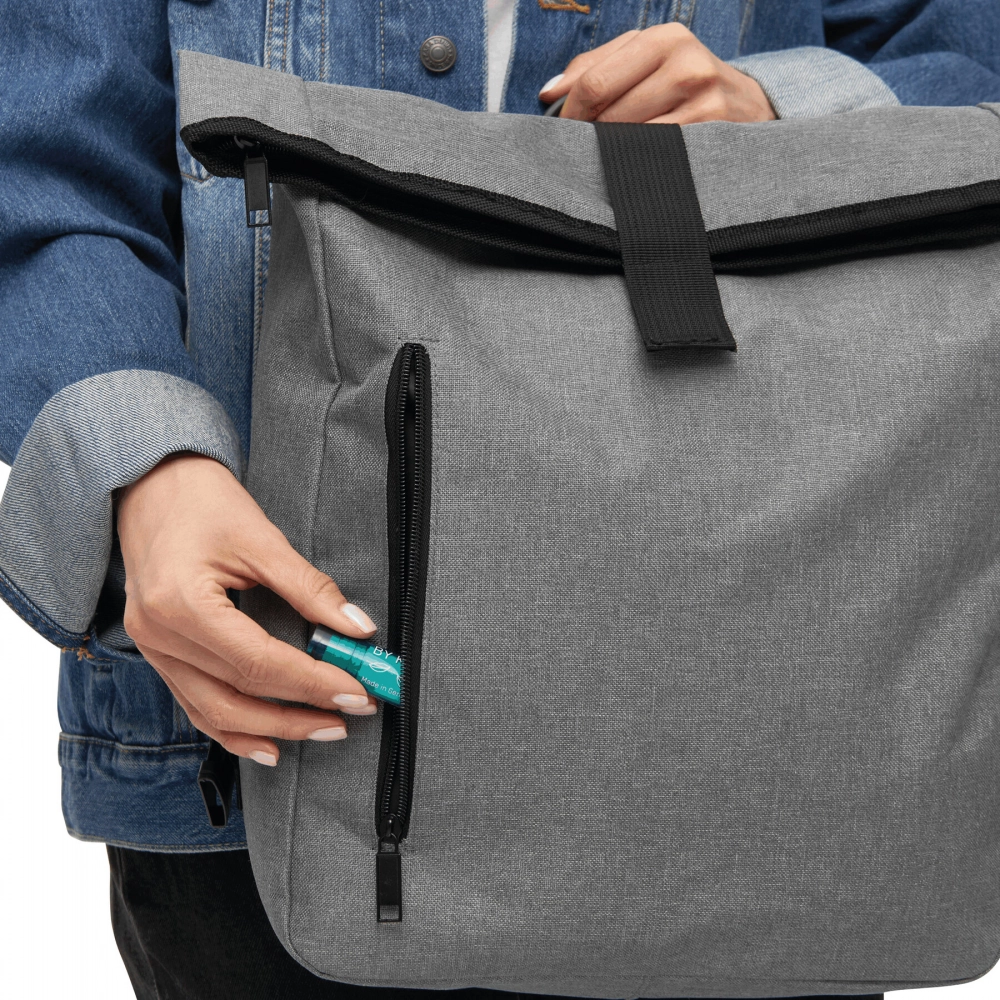 Cycling backpack BIKE RACE: main compartment with zip and padded interior compartment for laptop or tablet, opening can be rolled up and closed with Velcro, padded shoulder straps, front pocket with zip, carrying handle, shoulder straps can be stored in pocket with zip
