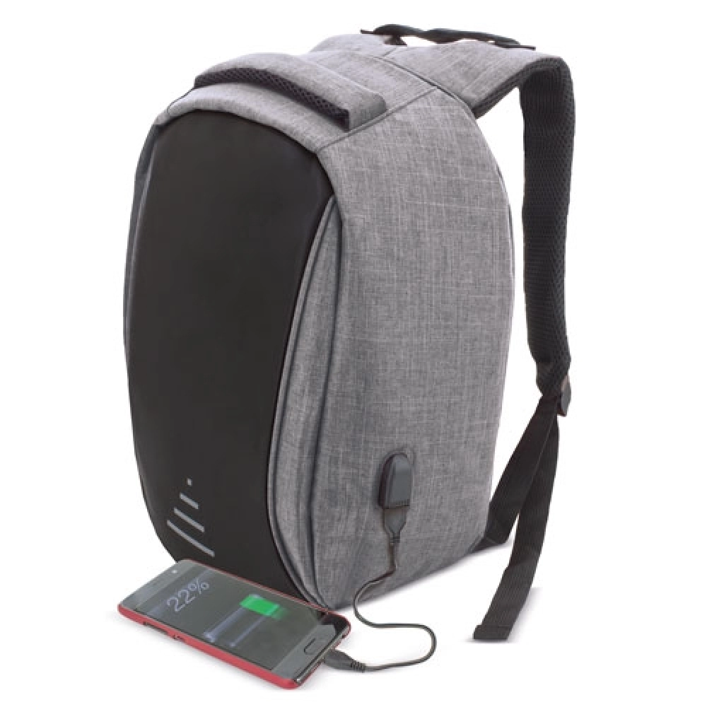 The SECURITY backpack has a sophisticated design with a modern, elegant and youthful appearance, whose essential function is to provide security to our belongings. This design places the main zipper in a hidden area of ??the back, and also has a hidden pocket on the back, and a smaller pocket on a backpack handle, for elements that require fast and secure access. Inside we can find a series of padded apartments suitable for laptops up to 15 ", another for tablet up to 8". It also has a USB input on one of its sides to connect our portable battery from the inside and be able to charge our mobile phone or devices while using them outside. The main main grip handle, the two rear handles (adjustable), and the back of the backpack are padded for comfort. On the front we have a modern and utilitarian design of bands in reflective material, for greater security. Available in 4 colors with textured design: BLUE, BORDEAUX, GRAY AND BLACK.