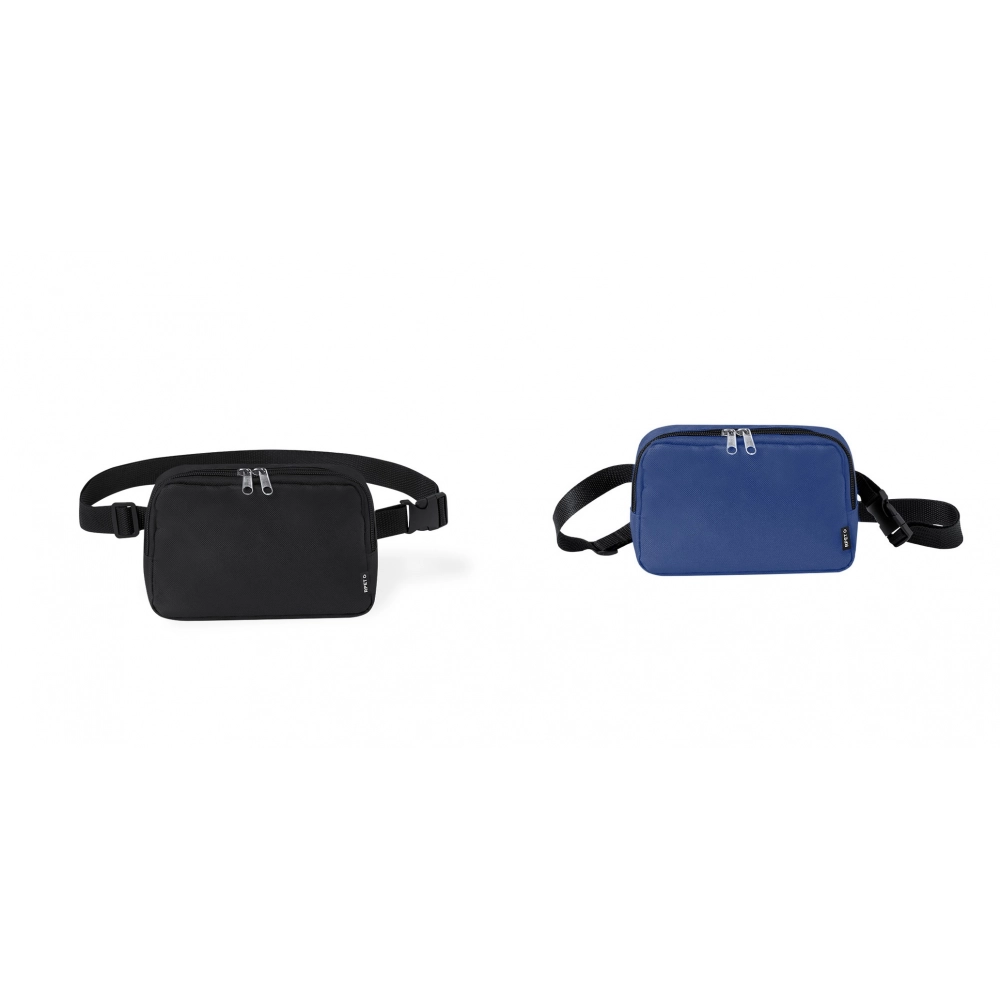 Features Rectangular design waist bag made of RPET 600D polyester. Features a central zipped pocket with double puller and adjustable strap with buckle closure. It also includes a distinctive RPET label and comes individually packaged in a recycled bag.RPET material is made from recycled plastic, thus promoting the reuse of plastic waste and helping the sustainability of the planet. Polyester 600D RPET