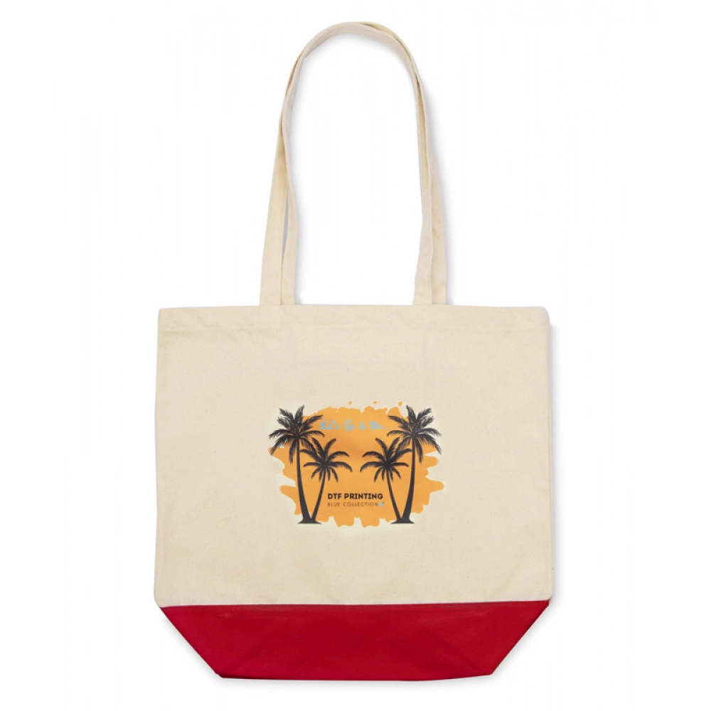 The VIBO cotton bag is a functional promotional product made of high-quality fabric with a weight of 340 g/m² . The long handles ensure comfortable carrying over the shoulder, while the wide bottom makes packing larger items easier. The bag stands out from other cotton bags with its colorful bottom. Ideal for trade shows, shopping, or the beach, it makes a practical promotional gift. With a large area for branding It’s an excellent choice for promoting your brand.