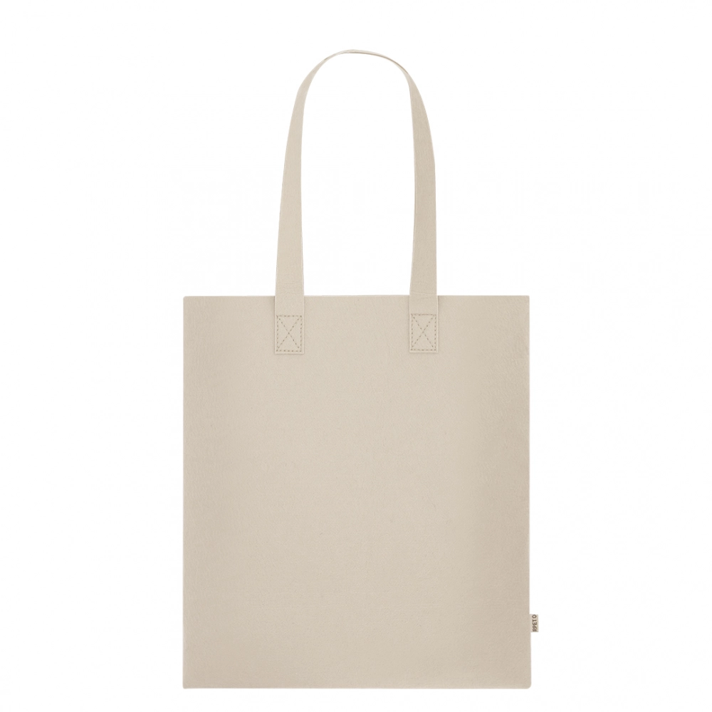 Features Bag made of recycled RPET felt. With long reinforced handles. Resistance up to 6 kg. Includes RPET label on the outer tag.RPET material is made from recycled plastic to promote the reuse of plastic waste and help the planet's sustainability. Felt RPET Final Packing 1 Without Individual Presentation Master Box Pcs: 50 Height: 40 cm / Width: 44 cm / Length: 44 cm / Weight: 7.5 kg Pallet Pcs: 1200 Packages: 24 Weight Aprox: 180 kg