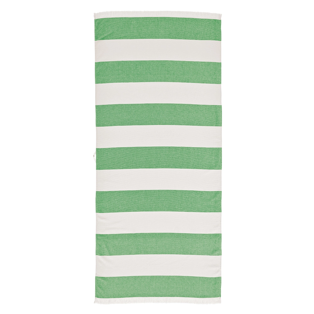 This recycled cotton (60% recycled cotoon and 40% cotton) beach towel has 350gsm and features stylish horizontal stripes. Measuring 80 x 180cm, it comes with a border and fringes. Packaged in a biodegradable polybag, it's a guilt-free pleasure for your bathing routine. Made in Portugal.