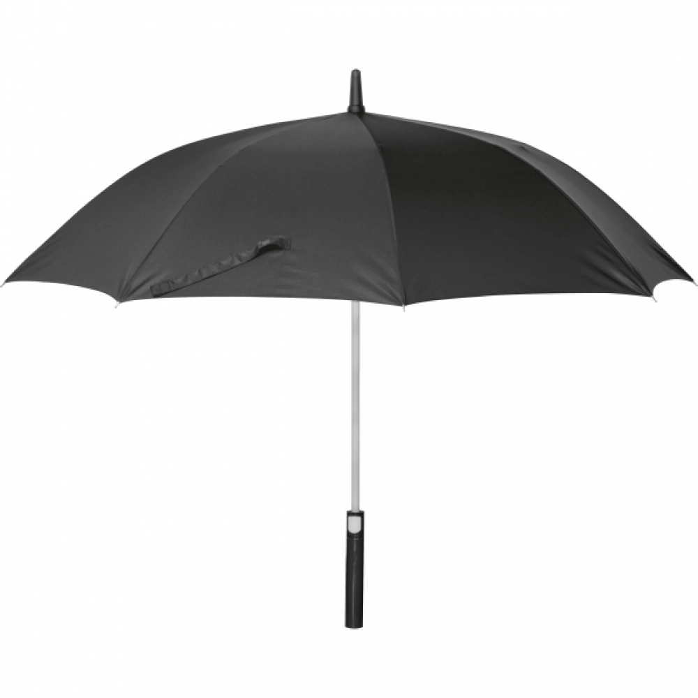 Automatic umbrella made of 190T pongee with fibreglass shaft and matt soft handle.
