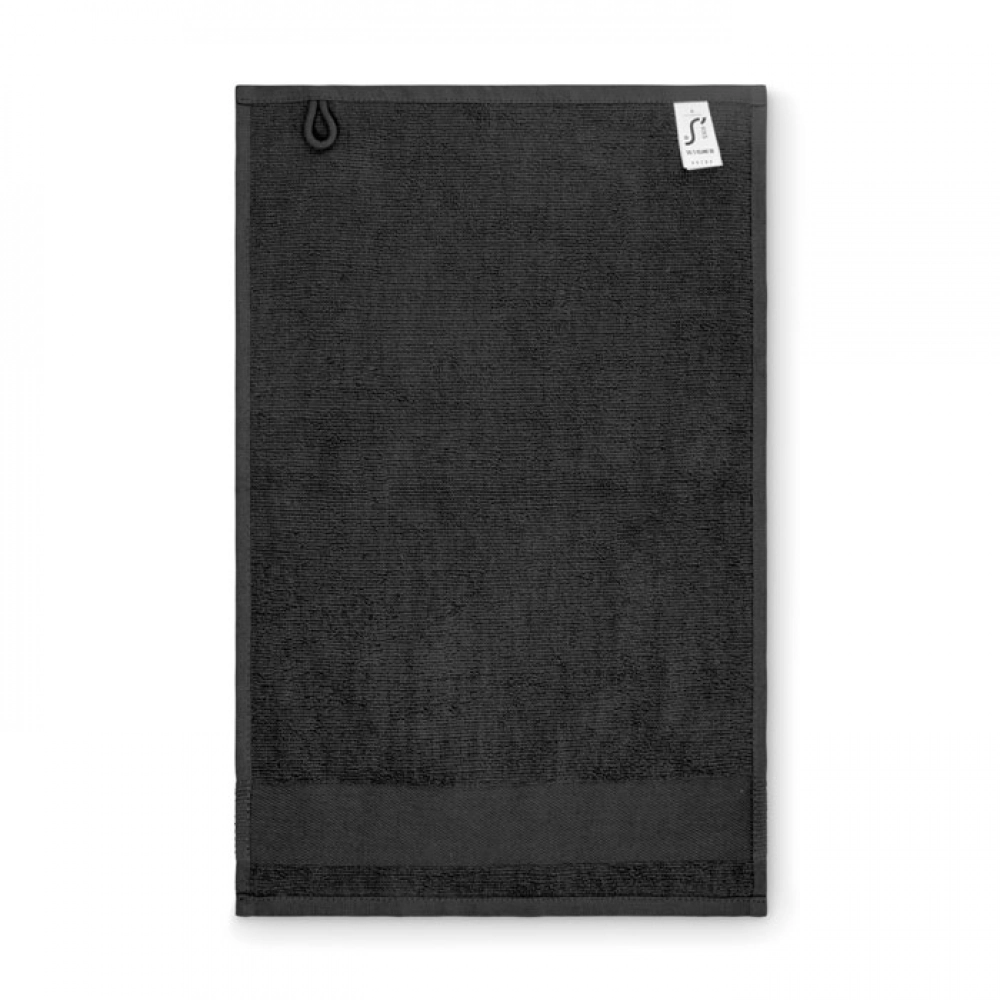 Guest towel made of 100% cotton, 380 gr/m² fabric with cotton hanger loop. Soft and absorbent design. Size 30 cm x 50 cm.