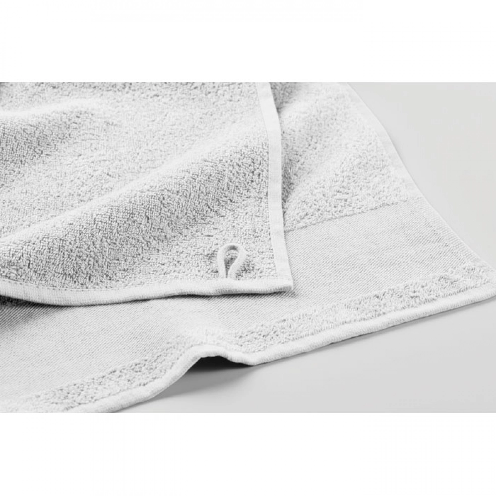 Bath towel made of 100% cotton, 380 gr/m² fabric with cotton hanger loop. Soft and absorbent design. Size 100 cm x 150 cm.