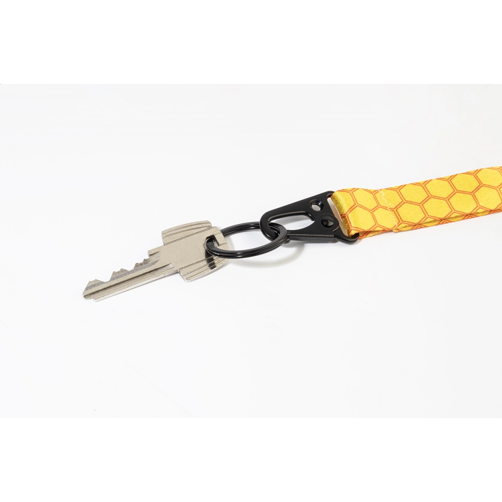 Изготовленный на заказ ланьярд из RPET с черным металлическим карабином тактического стиля, кольцом для ключей и застежкой безопасности. С графикой, нанесенной методом сублимации на обеих сторонах. Минимальный заказ: 100 шт.