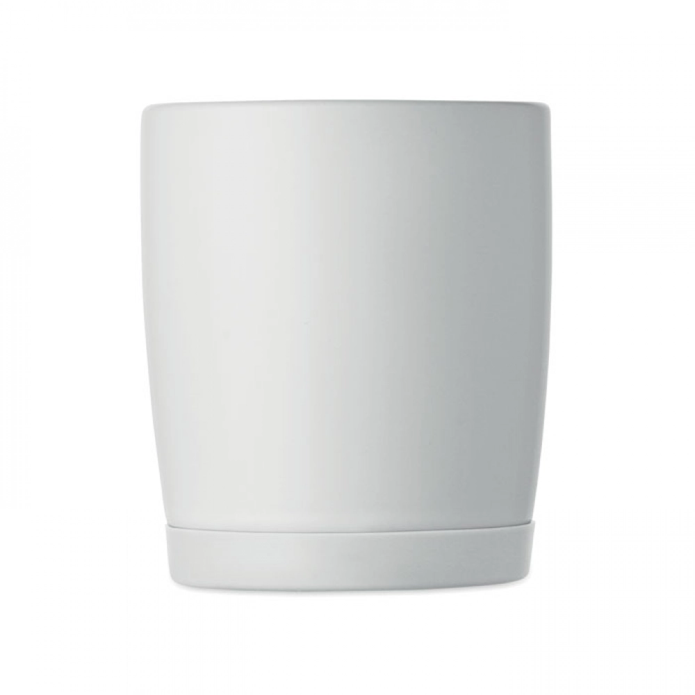 Керамическая кружка с белым матовым покрытием и силиконовым основанием для устойчивости. Объем 300 мл. Индивидуальная упаковка в белой картонной коробке.