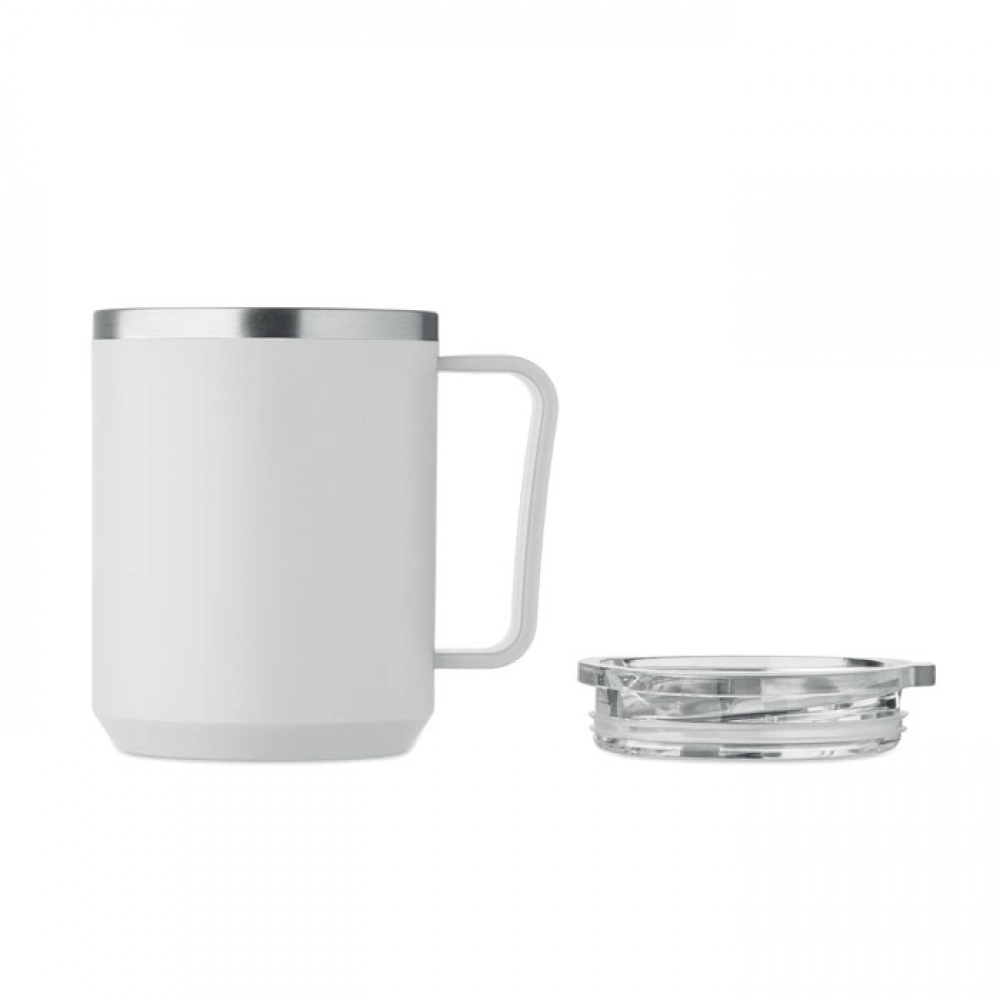 Двустенная кружка с внутренней частью из 90% переработанной нержавеющей стали и 10% нержавеющей стали, а также внешней частью из переработанного полипропилена. В комплекте прозрачная крышка из акрилонитрилстирола (AS) с раздвижным механизмом. Объем 400 мл.
