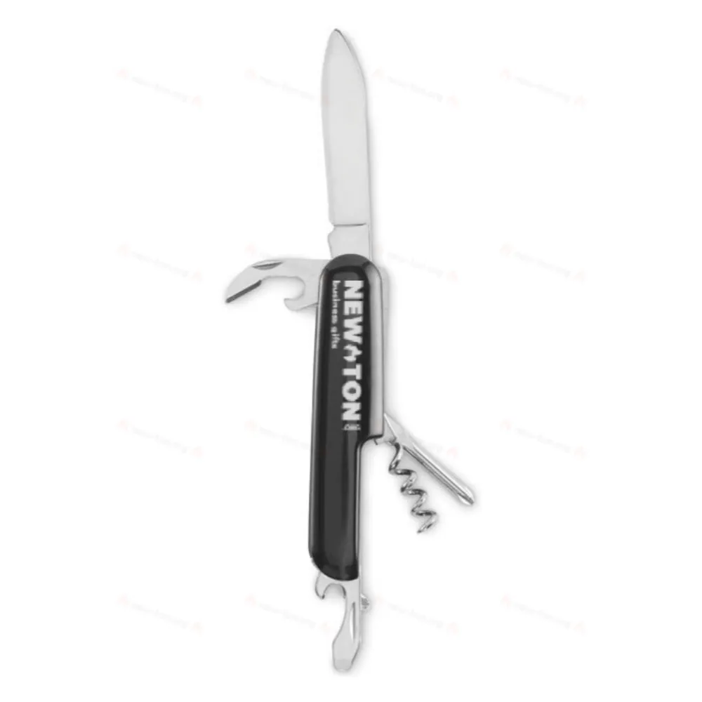 Многофункциональный перочинный нож из переработанного алюминия. 5 функций: нож, открывалка для бутылок, отвертка, штопор и консервный нож.
