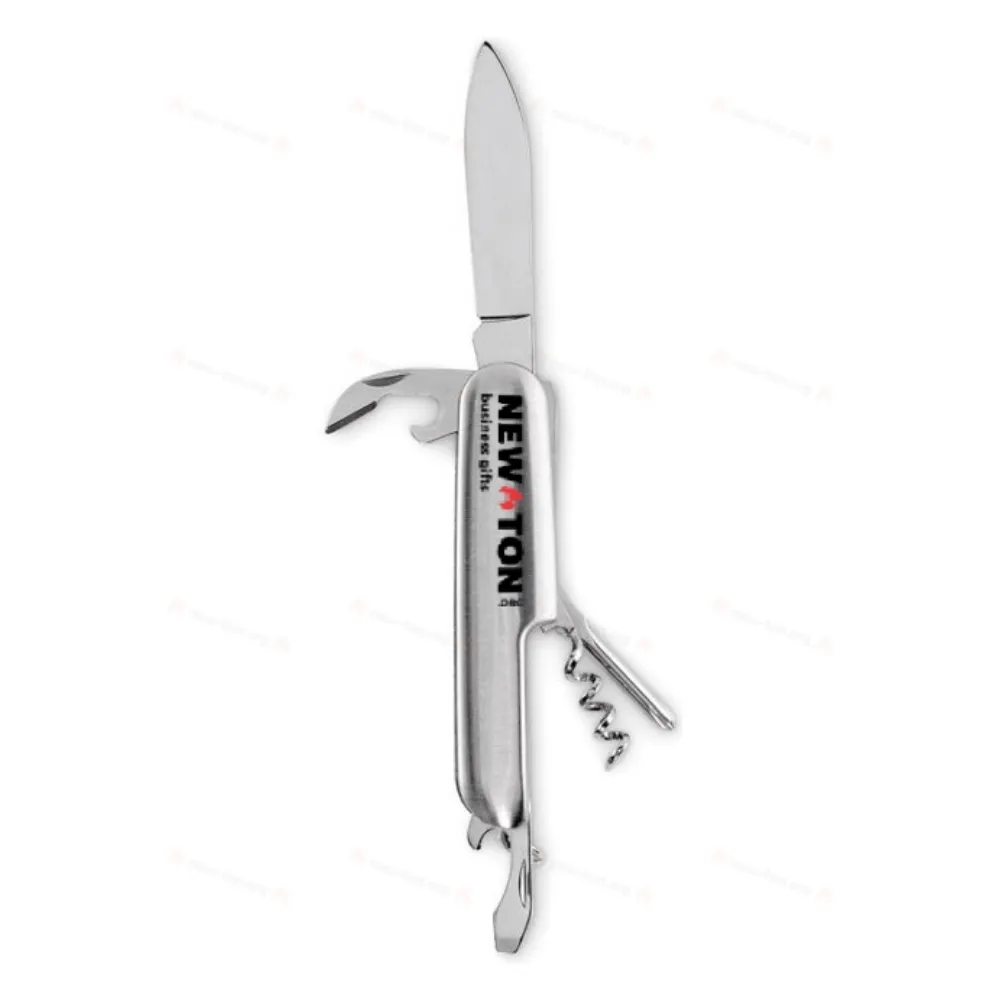 Многофункциональный перочинный нож из переработанного алюминия. 5 функций: нож, открывалка для бутылок, отвертка, штопор и консервный нож.