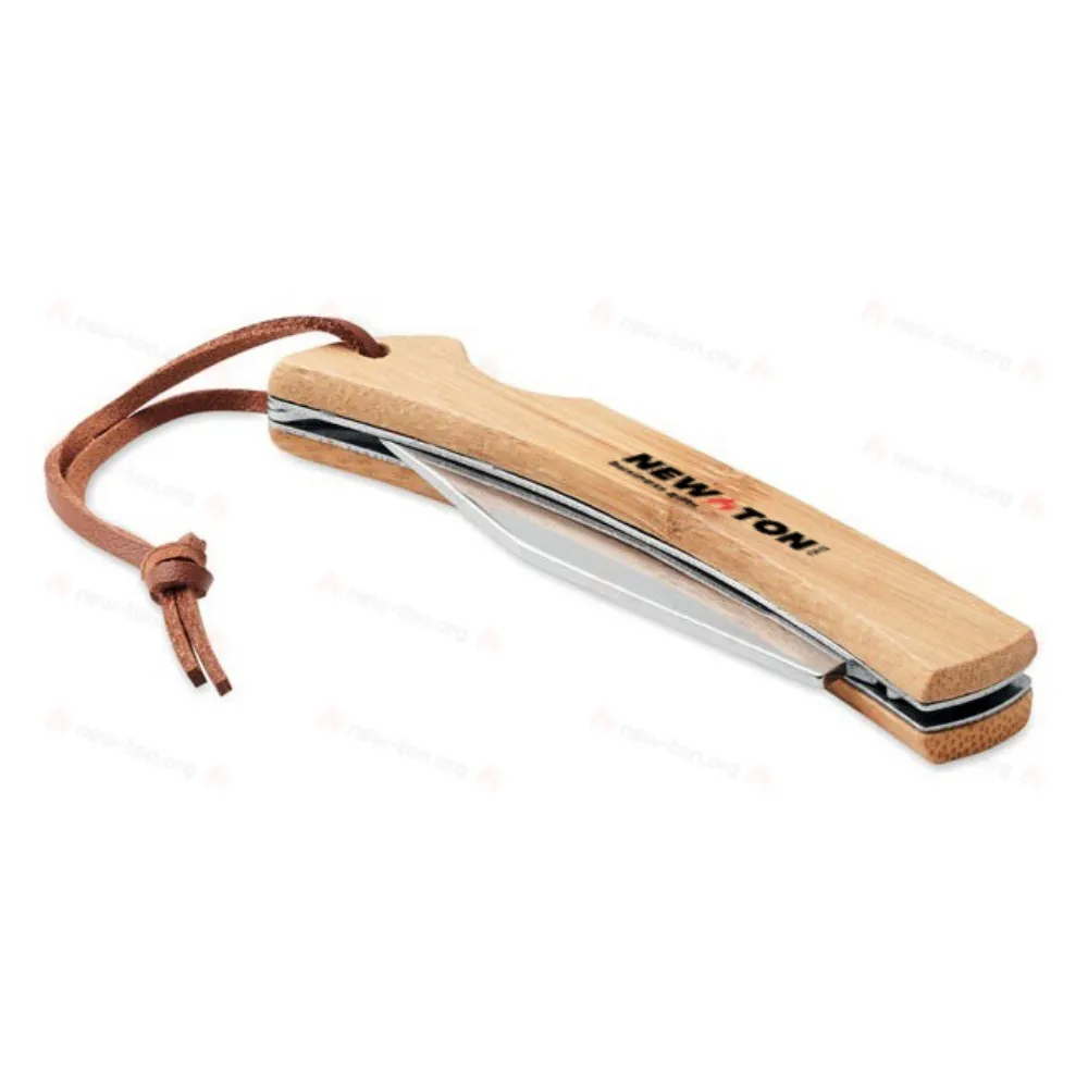 Складной нож из нержавеющей стали 2CR13 с бамбуковой рукояткой и шнурком из полиуретана.
