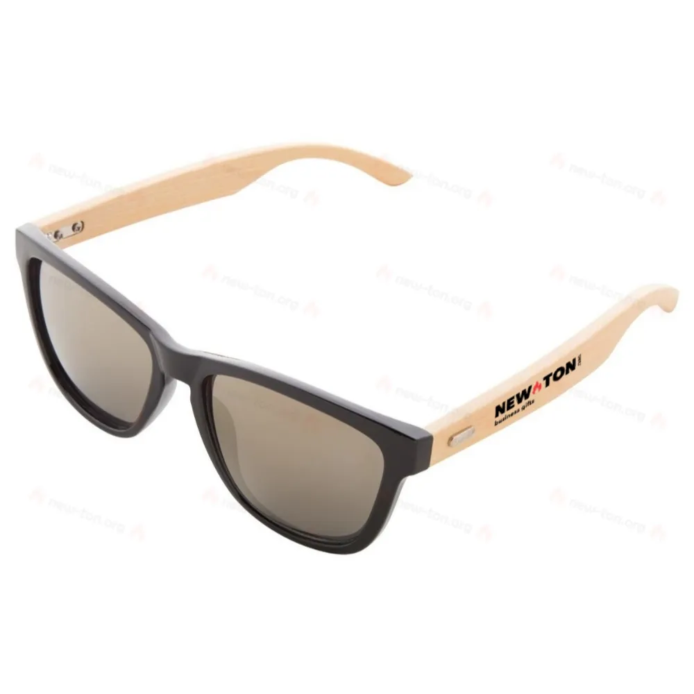 Пластиковые солнцезащитные очки с бамбуковыми дужками и металлическими линзами. С защитой UV 400.