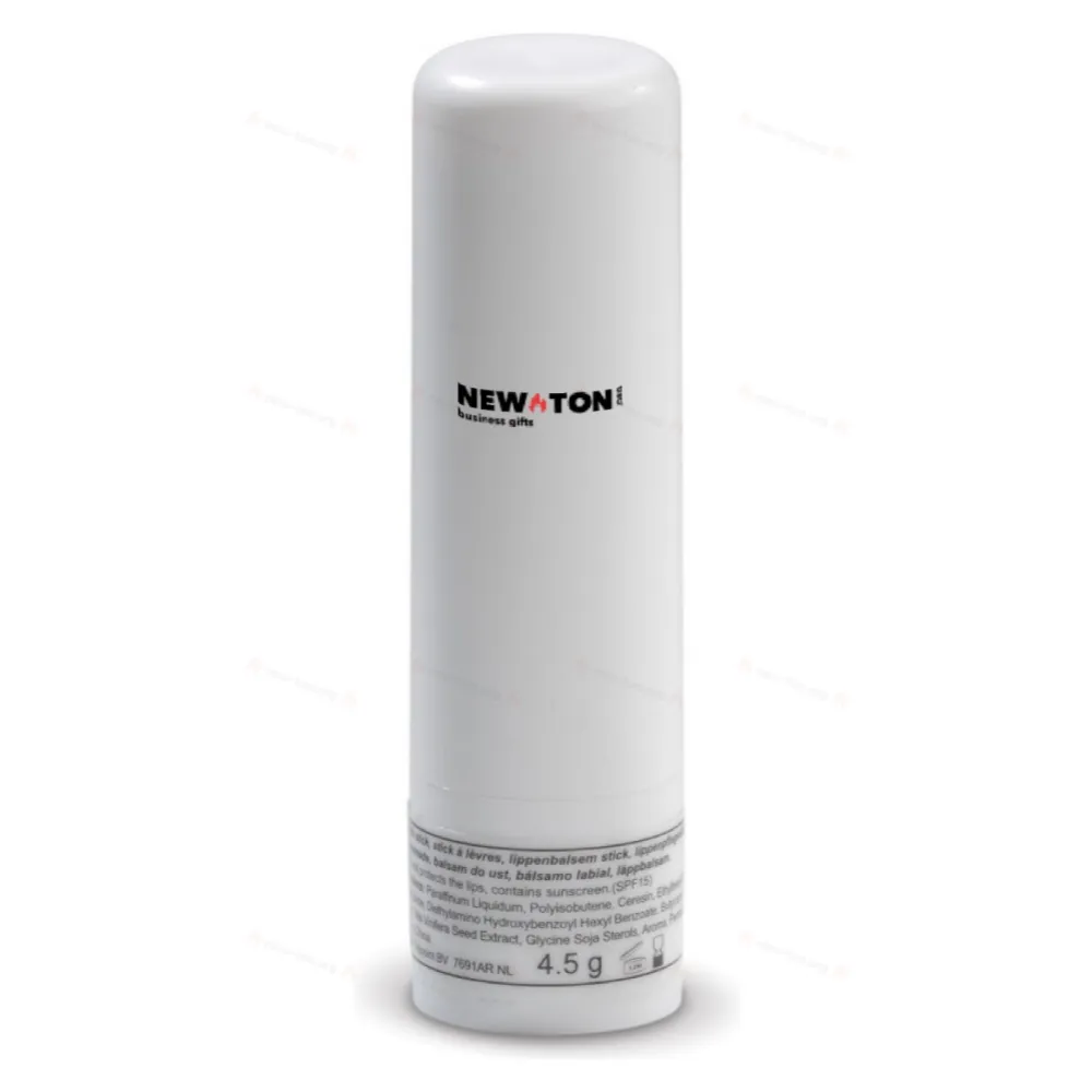 Бальзам для губ в круглой палочке. На дне палочки есть поворотный механизм для поднятия бальзама. Доступен в прозрачных цветах, а также в жестком черном или белом цвете.